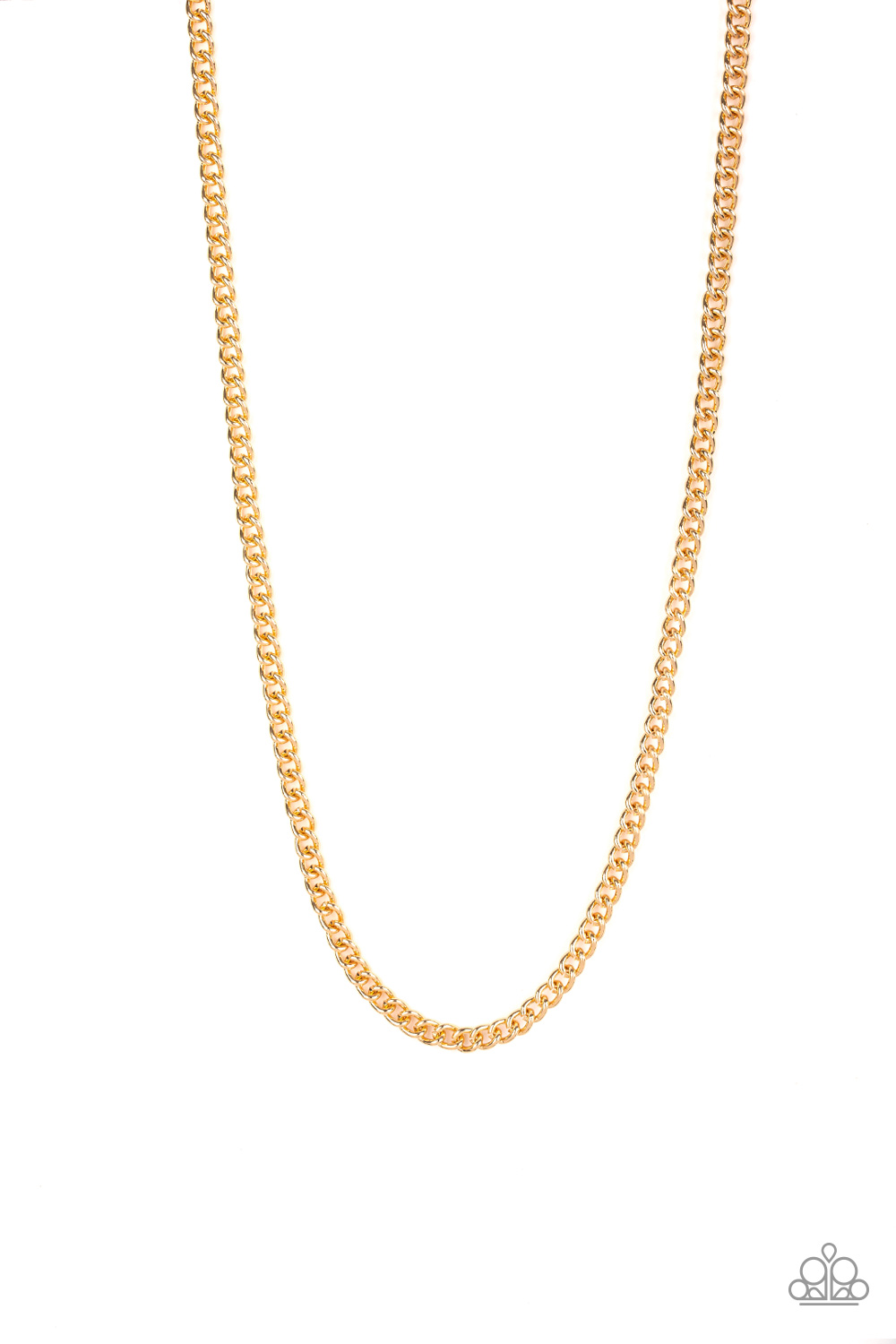 Brushed in a shiny finish, a classic gold cable chain drapes across the chest for a casual look. Features an adjustable clasp closure.