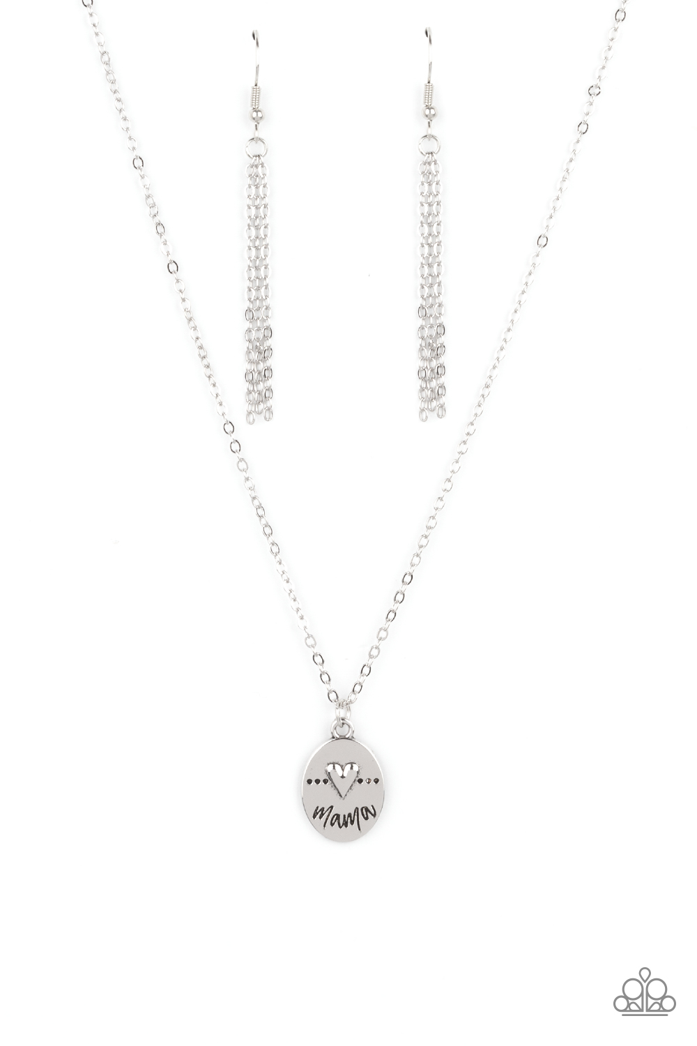 Embossed in a dainty silver heart, a dotted silver frame is stamped in the word, "Mama," creating a sentimental pendant below the collar. Features an adjustable clasp closure.