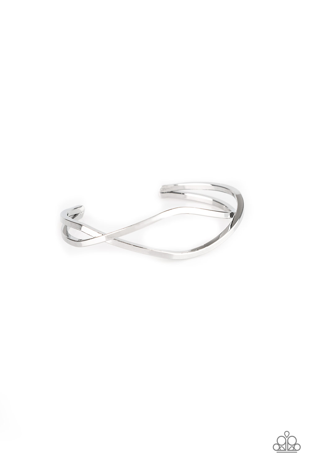 Glistening silver bars arc across the wrist, coalescing into an airy tribal cuff.