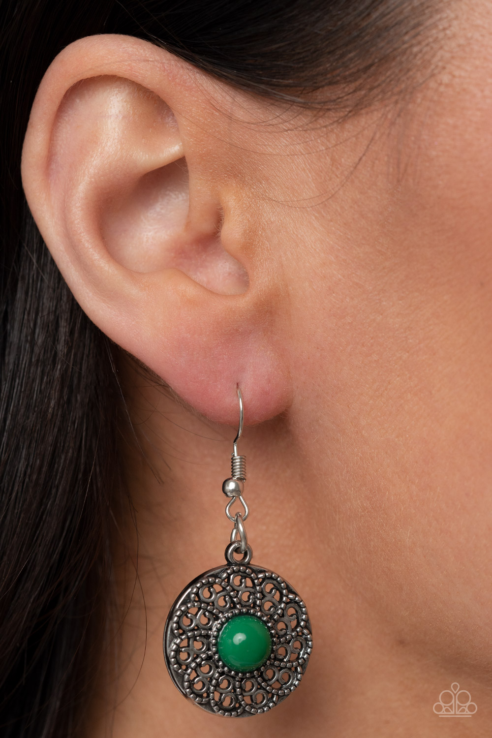 Dotted with bubbly Leprechaun beads, silver discs spinning with swirly petal motifs gradually increase in size as they link below the collar for a statement-making floral fashion. Features an adjustable clasp closure.