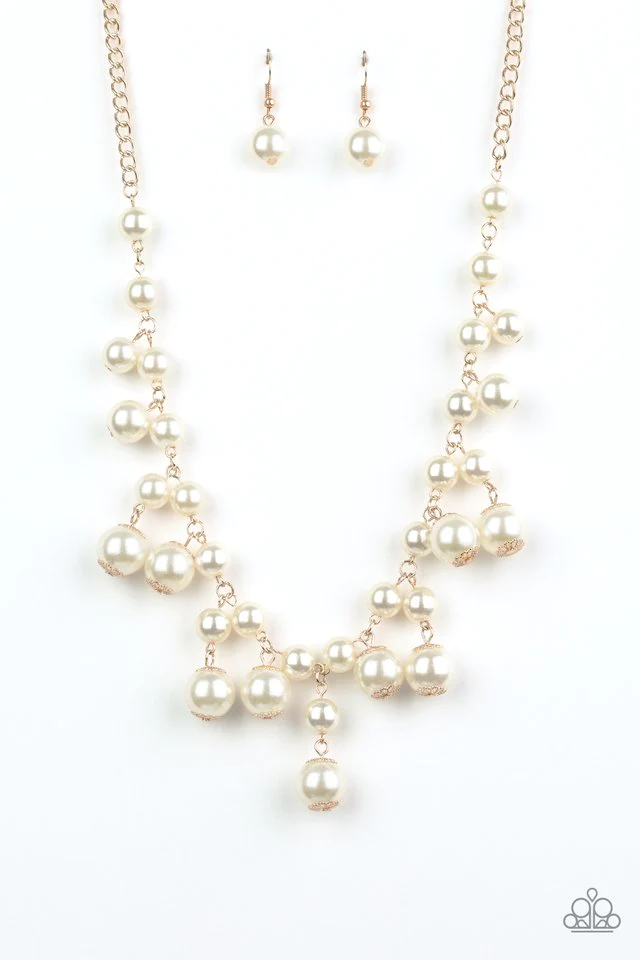 Varying in size, bubbly white pearls swing from the bottom of a classic strand of pearls, creating a refined fringe below the collar. Features an adjustable clasp closure. Sold as one individual necklace. Includes one pair of matching earrings.