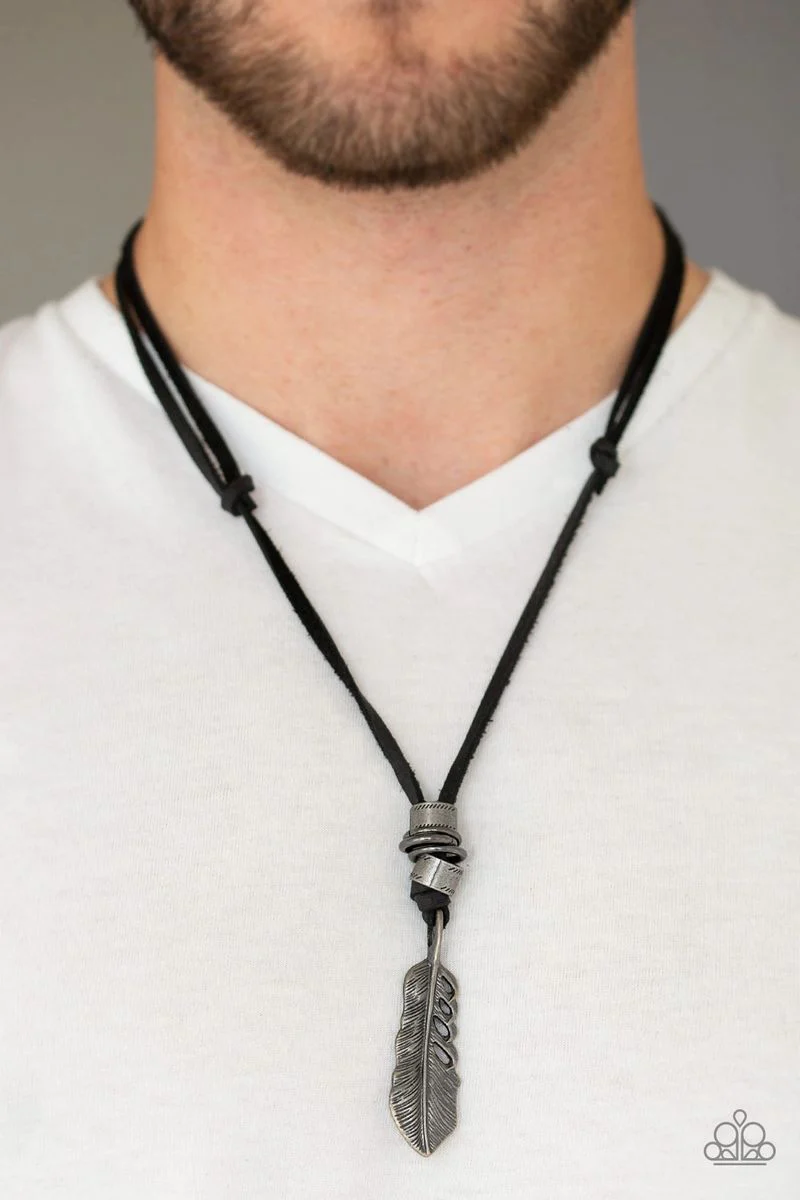 Infused with antiqued silver beading, a lifelike silver feather pendant is knotted in place below the collar for a seasonal flair. Features an adjustable sliding knot closure.Sold as one individual necklace.