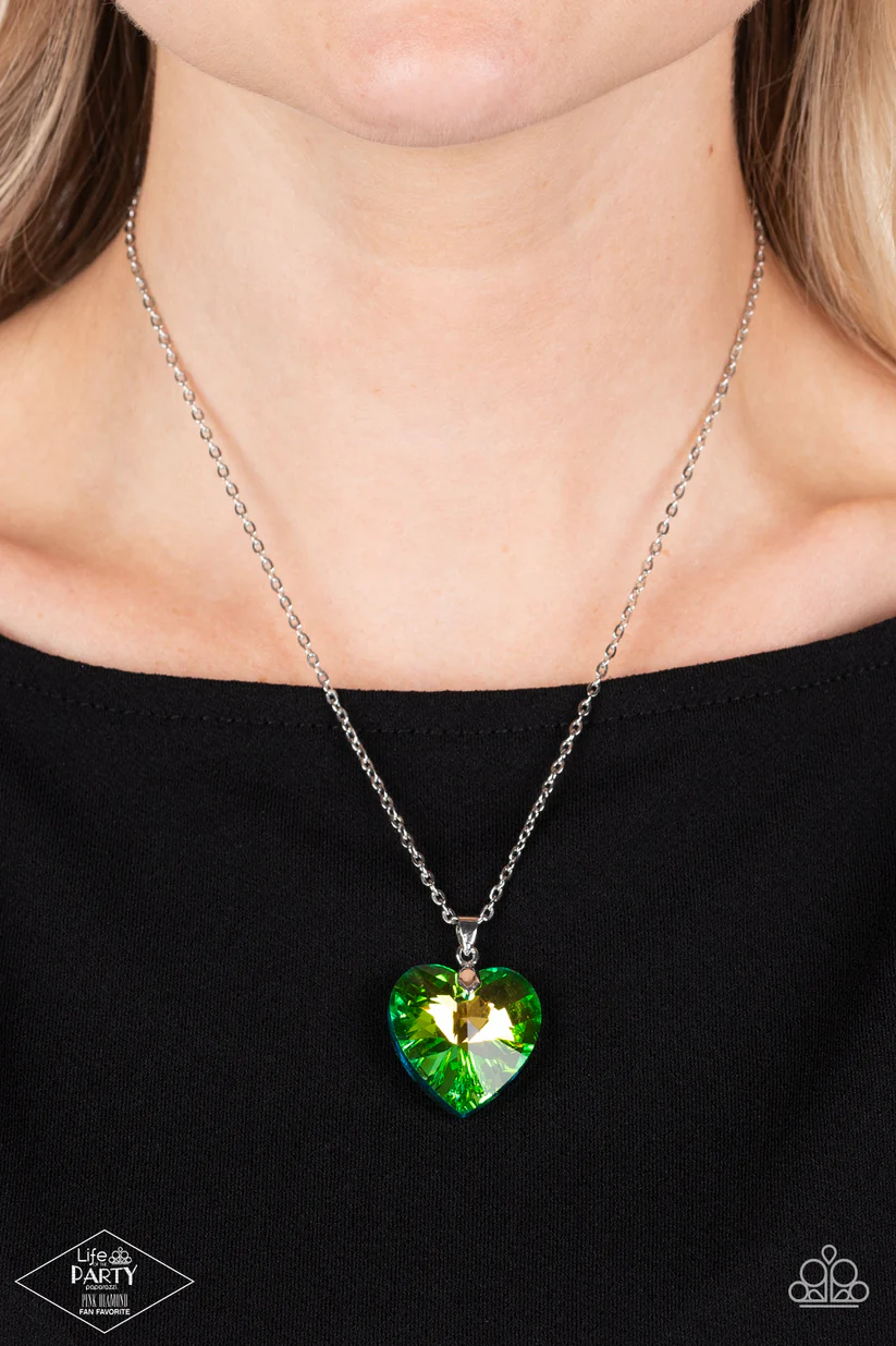 Chiseled into a charming heart, an oversized multicolored gem slides along a dainty silver chain below the collar for a flirtatious finish. Features an adjustable clasp closure. Due to its prismatic palette, color may vary.