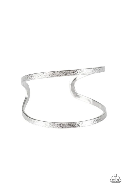 Delicately hammered in shimmer, glistening silver bars arc across the wrist, coalescing into an airy cuff. Sold as one individual bracelet.