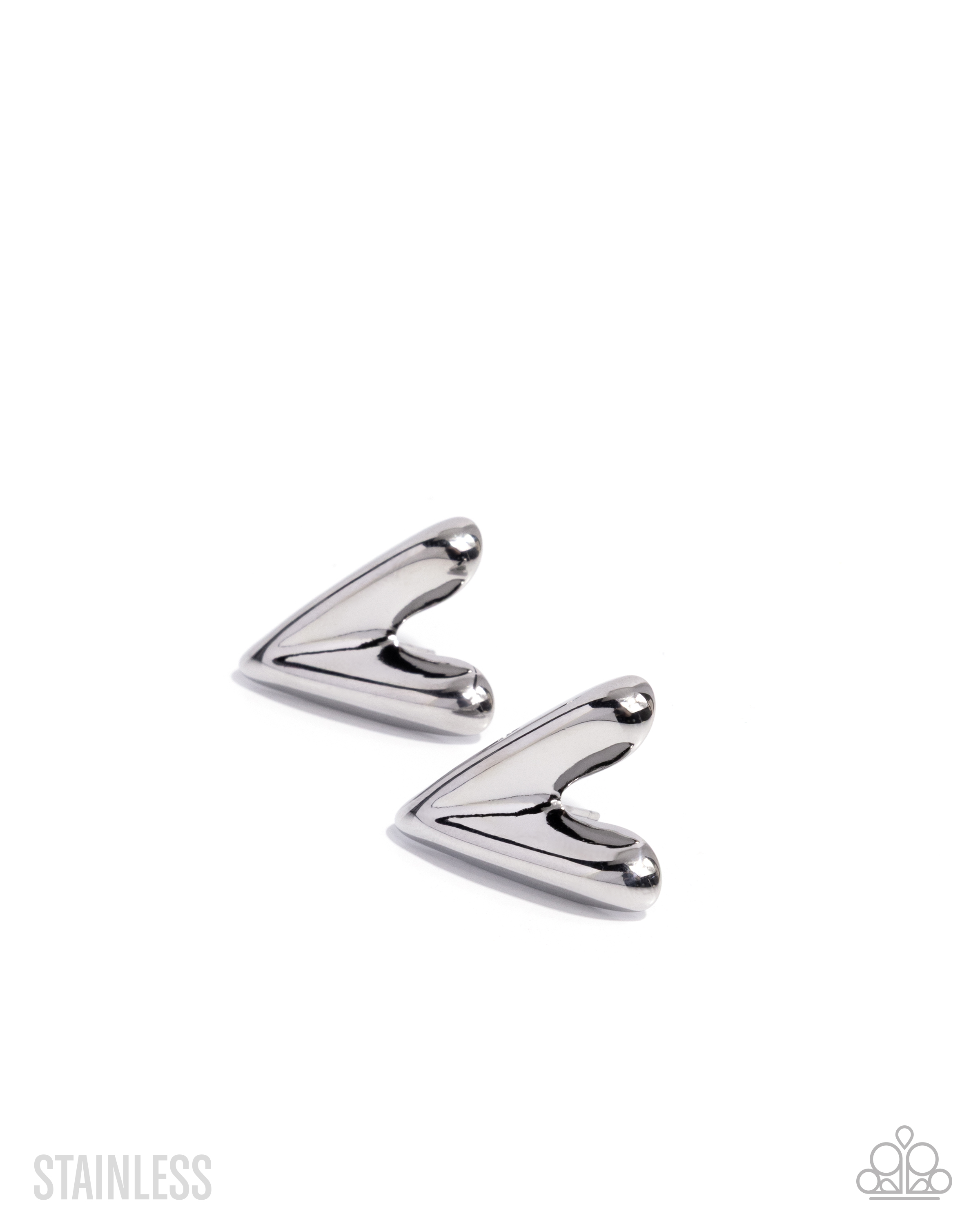 Featuring stainless steel, a slightly pinched silver heart sits atop the ear for a radiantly romantic display. Earring attaches to a standard post fitting.