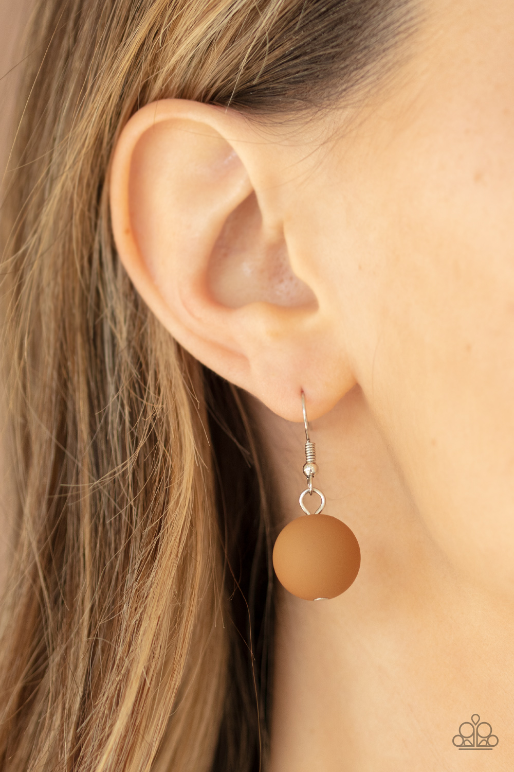 Cork-like frames and brown matte beads are threaded along an invisible wire below the collar for a statement-making look. Features an adjustable clasp closure.