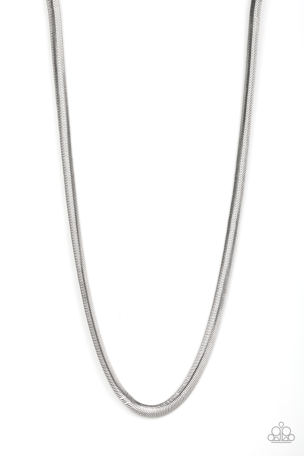 Featuring a high-sheen finish, a thick silver herringbone chain drapes across the chest for a sleek, upscale look. Features an adjustable clasp closure.