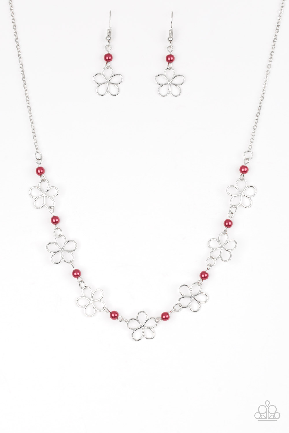 Dainty red pearls and airy floral frames link below the collar for a seasonal look. Features an adjustable clasp closure.