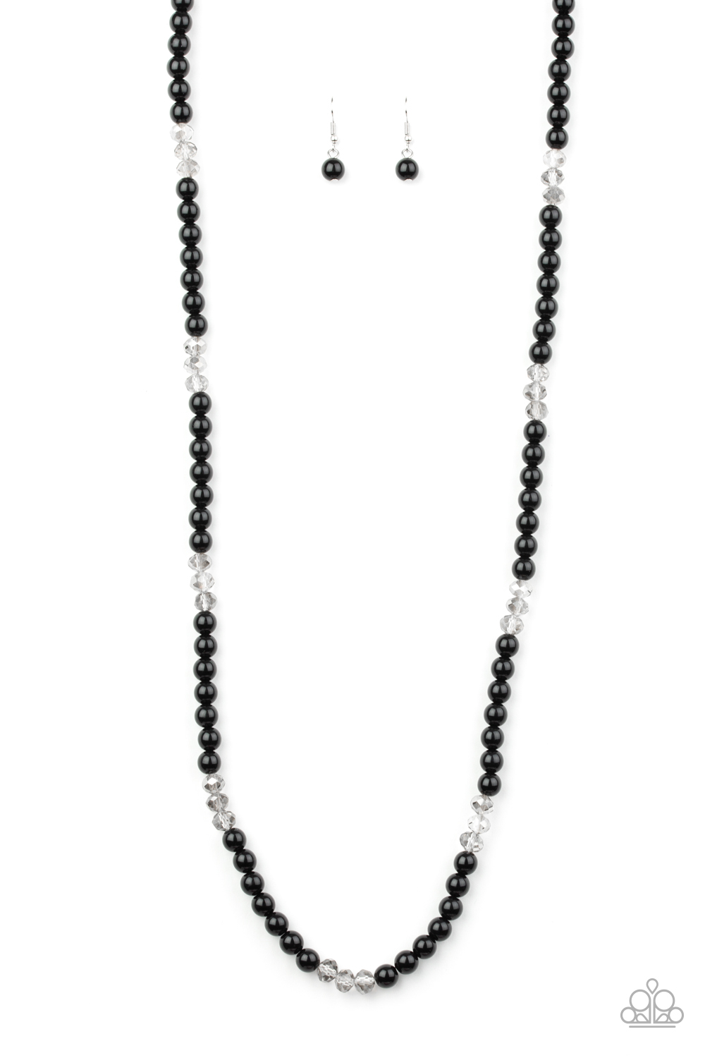 Infused with sections of smoky crystal-like beads, a timeless collection of black beads are threaded along an invisible wire across the chest for a refined flair. Features an adjustable clasp closure.