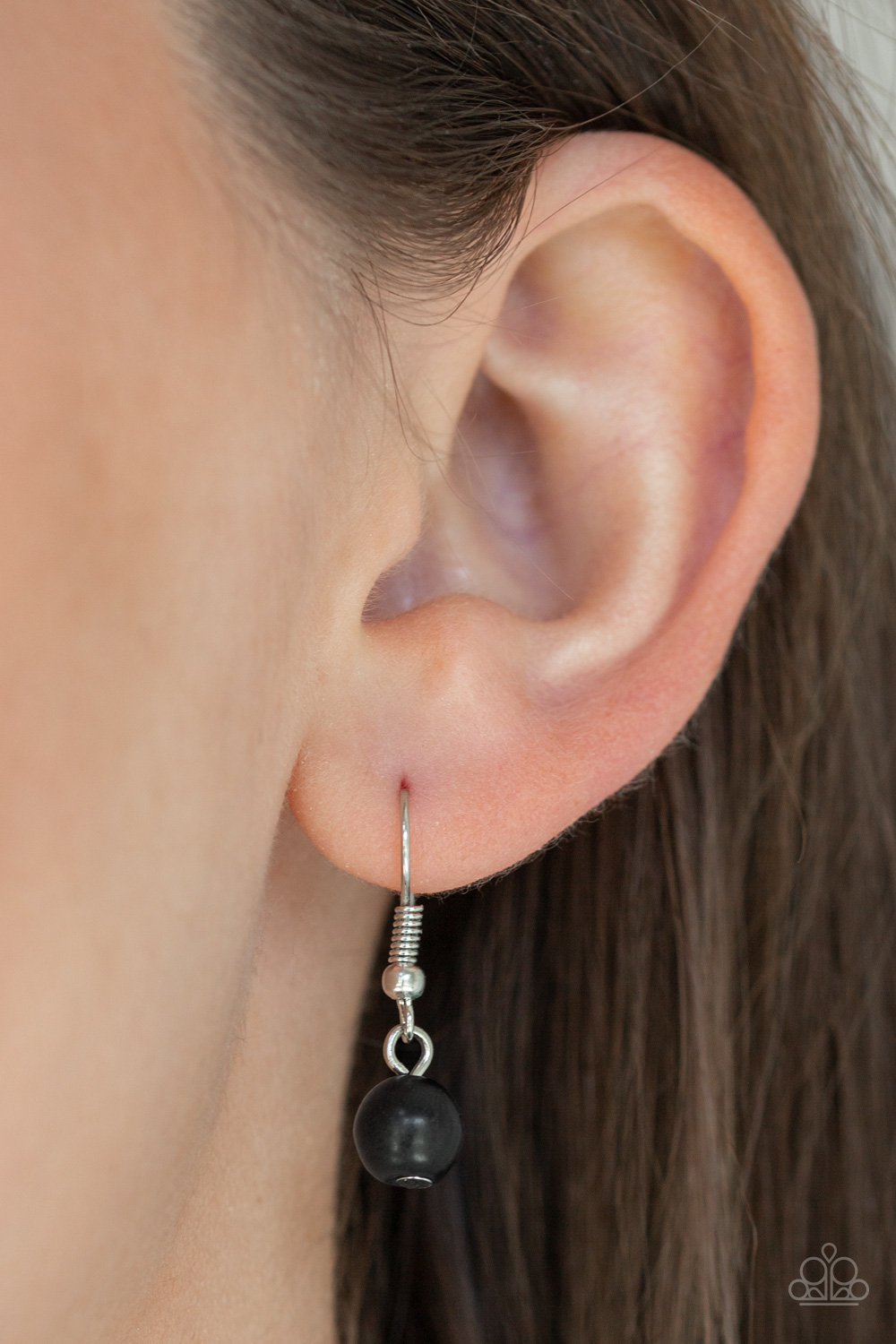 Round brown stone beads connect to oval black stone beads, creating an earthy fringe below the collar for a seasonal look. Features an adjustable clasp closure.