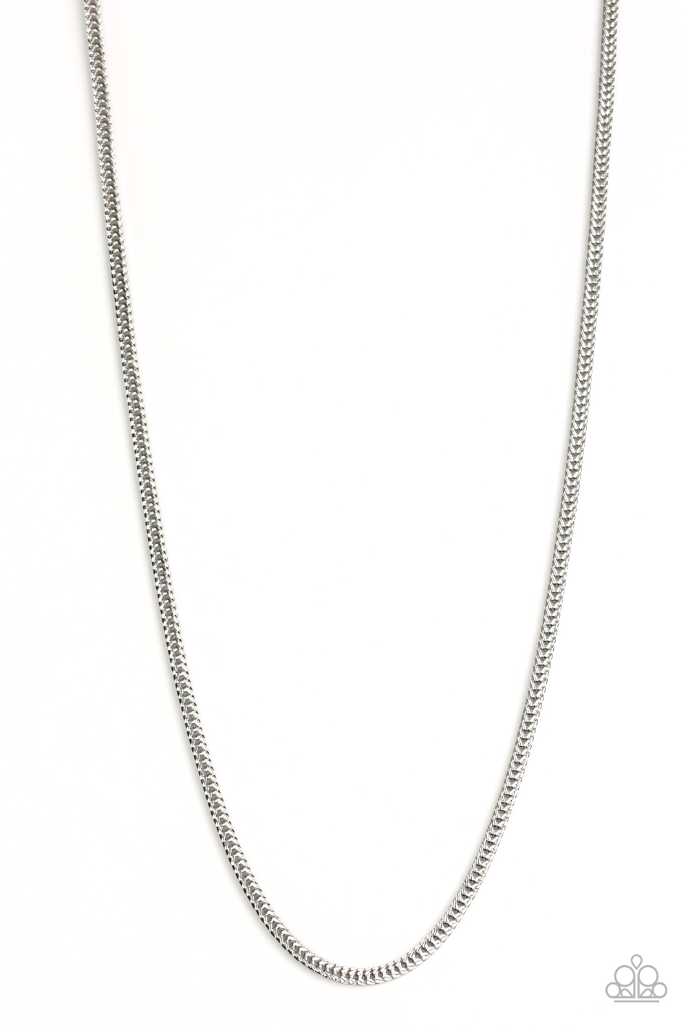 Brushed in a high-sheen finish, a shimmery row of silver flat franco chain drapes across the chest for a casual shine. Features an adjustable clasp closure.
