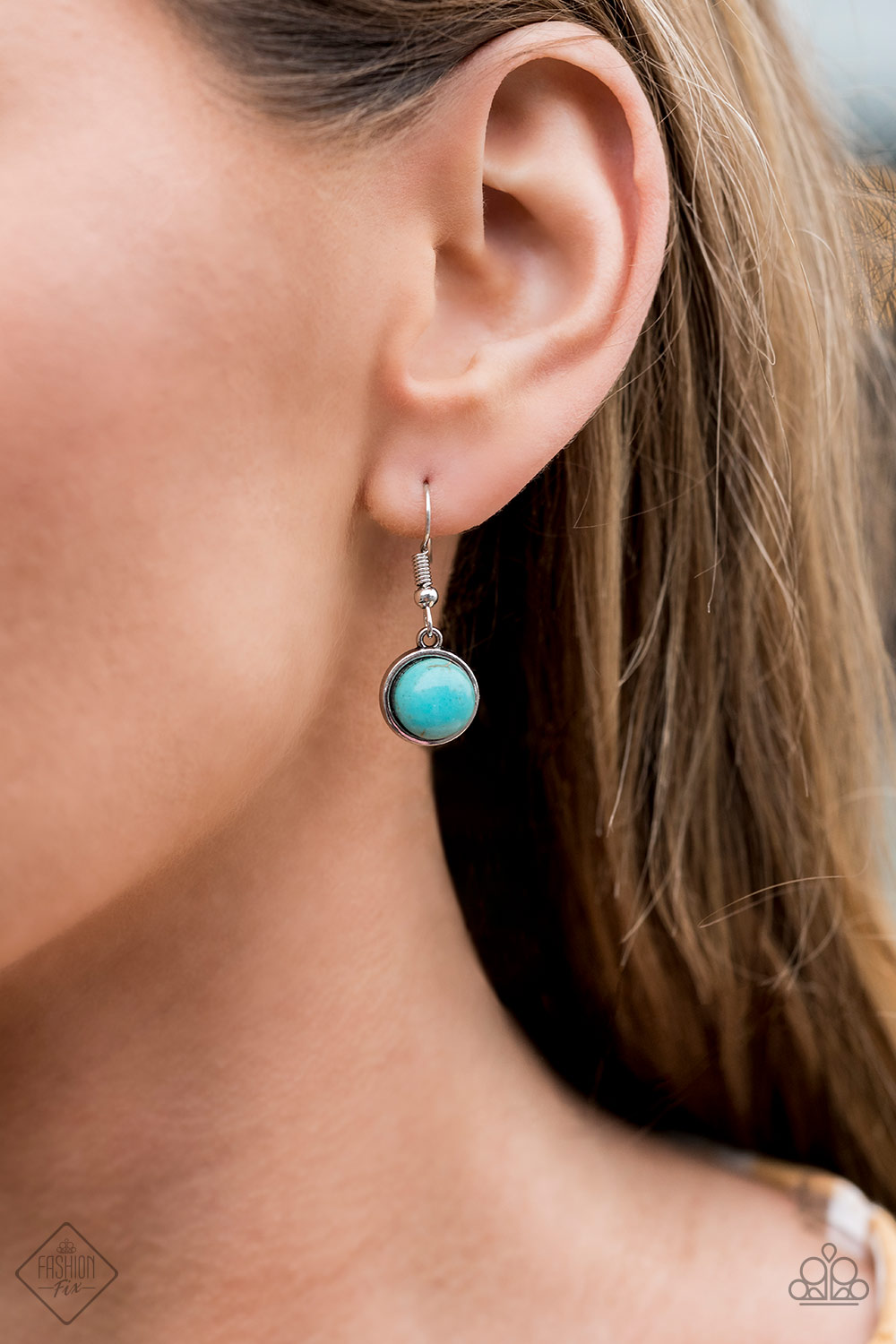 Refreshing turquoise stone frames link at the bottom of a lengthened silver chain, giving way to a shimmery silver chain tassel in a wanderlust finish. Features an adjustable clasp closure.