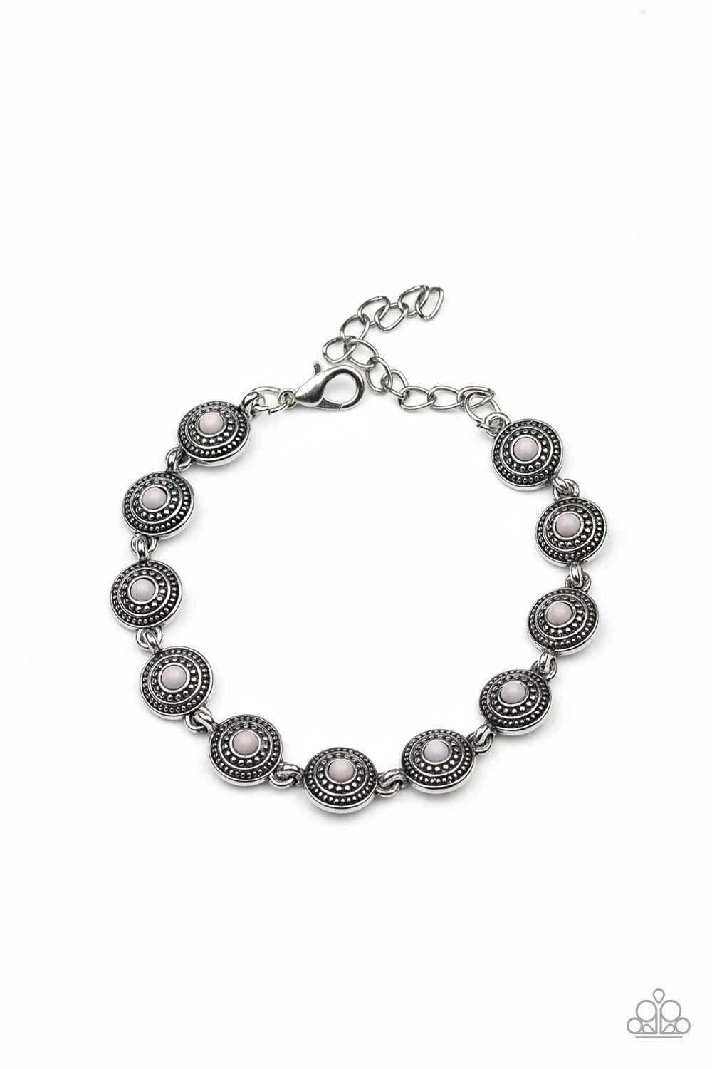 Dotted with dainty Ash stone centers, studded silver frames delicately link across the wrist for a seasonal look. Features an adjustable clasp closure.