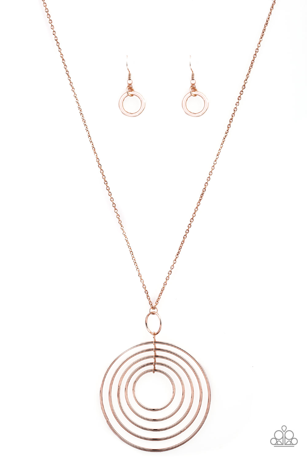 Threaded through a rose gold fitting, a collection of rose gold hoops collect into a dizzy pendant at the bottom of a lengthened rose gold chain for a refined look. Features an adjustable clasp closure.