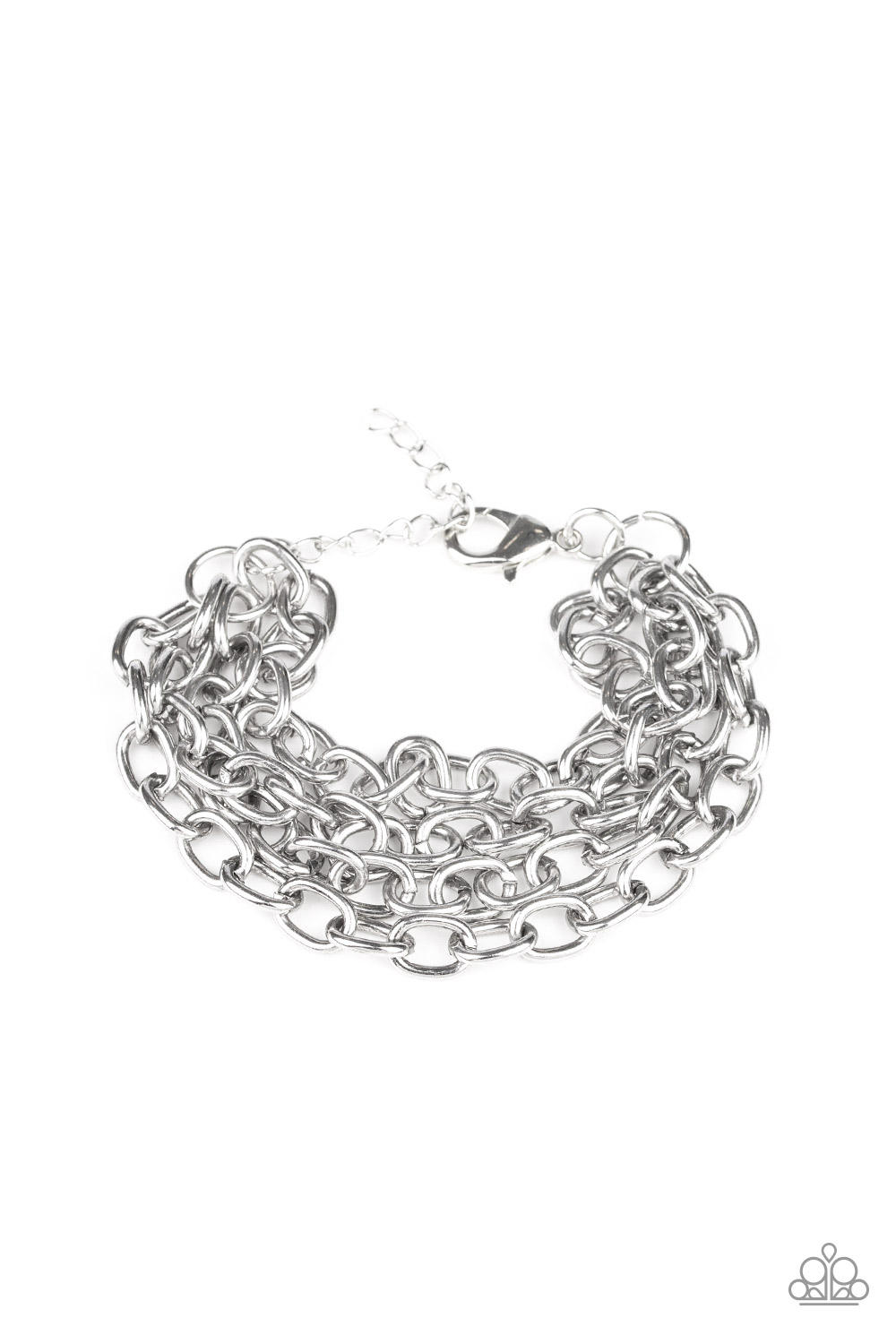 Four strands of bold silver chain layer across the wrist for an edgy look. Features an adjustable clasp closure.