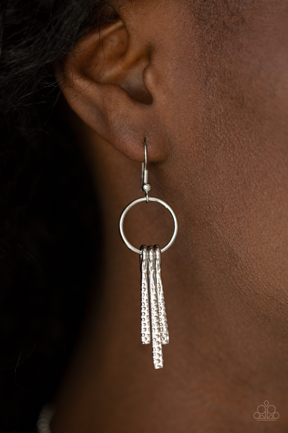 Textured silver rods flare out from the bottom of a rounded silver chain, creating a tapered fringe below the collar for a statement-making finish. Features an adjustable clasp closure.