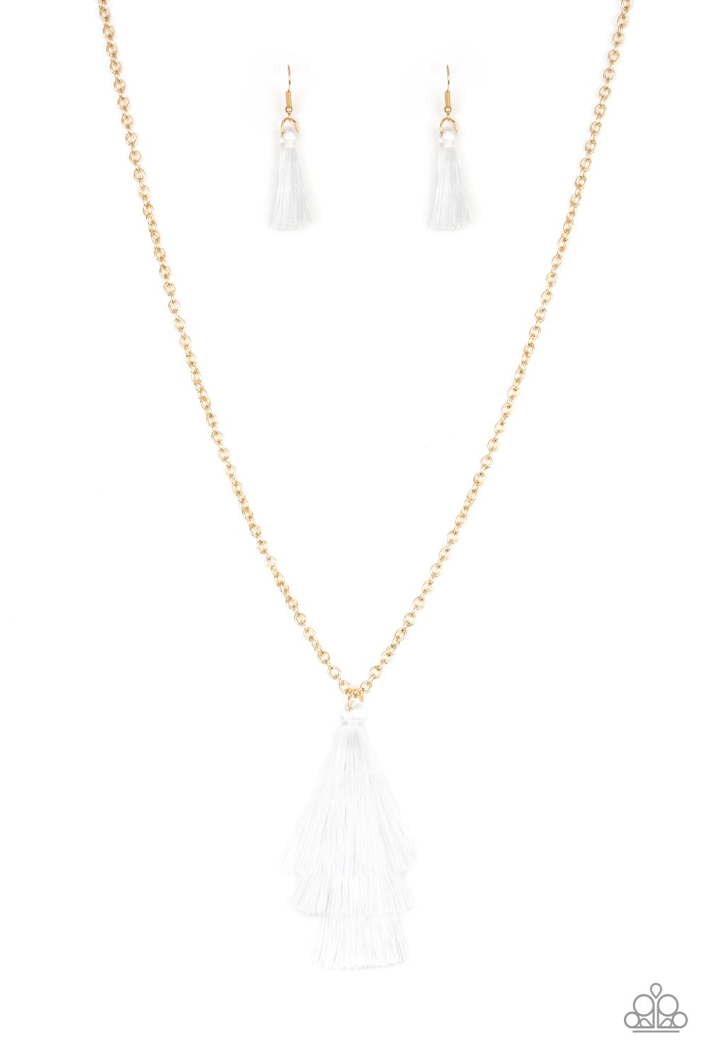 Featuring shimmery white thread, a 3-tiered tassel swings from the bottom of a lengthened gold chain for a colorful, wanderlust vibe. Features an adjustable clasp closure.