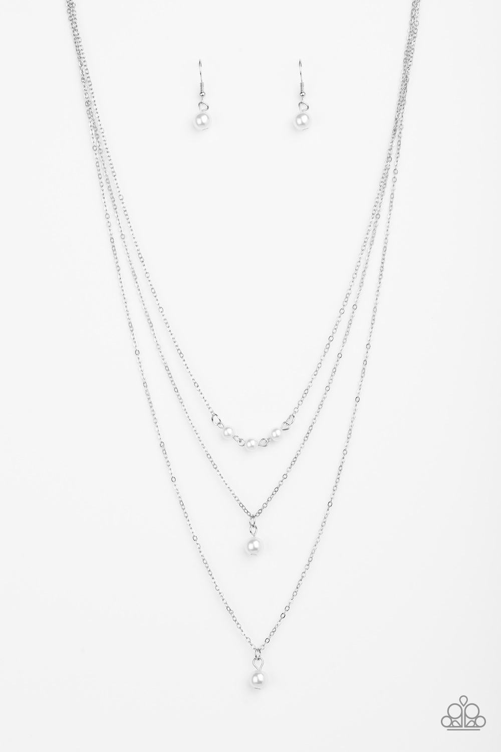 A trio of pearly white beads give way to layers of solitaire white pearl pendants below the collar for a refined flair. Features an adjustable clasp closure.