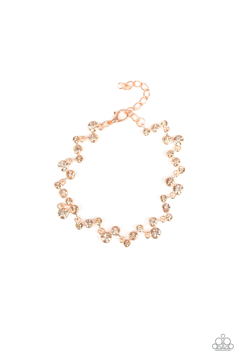 Varying in size, a collection of rhinestones connect across the wrist for a timeless look. Features an adjustable clasp closure.