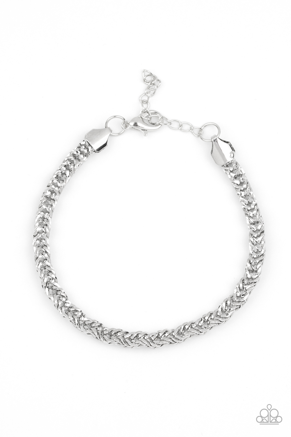 Brushed in a high-sheen finish, an ornate silver chain links around the wrist for a bold look. Features an adjustable clasp closure.