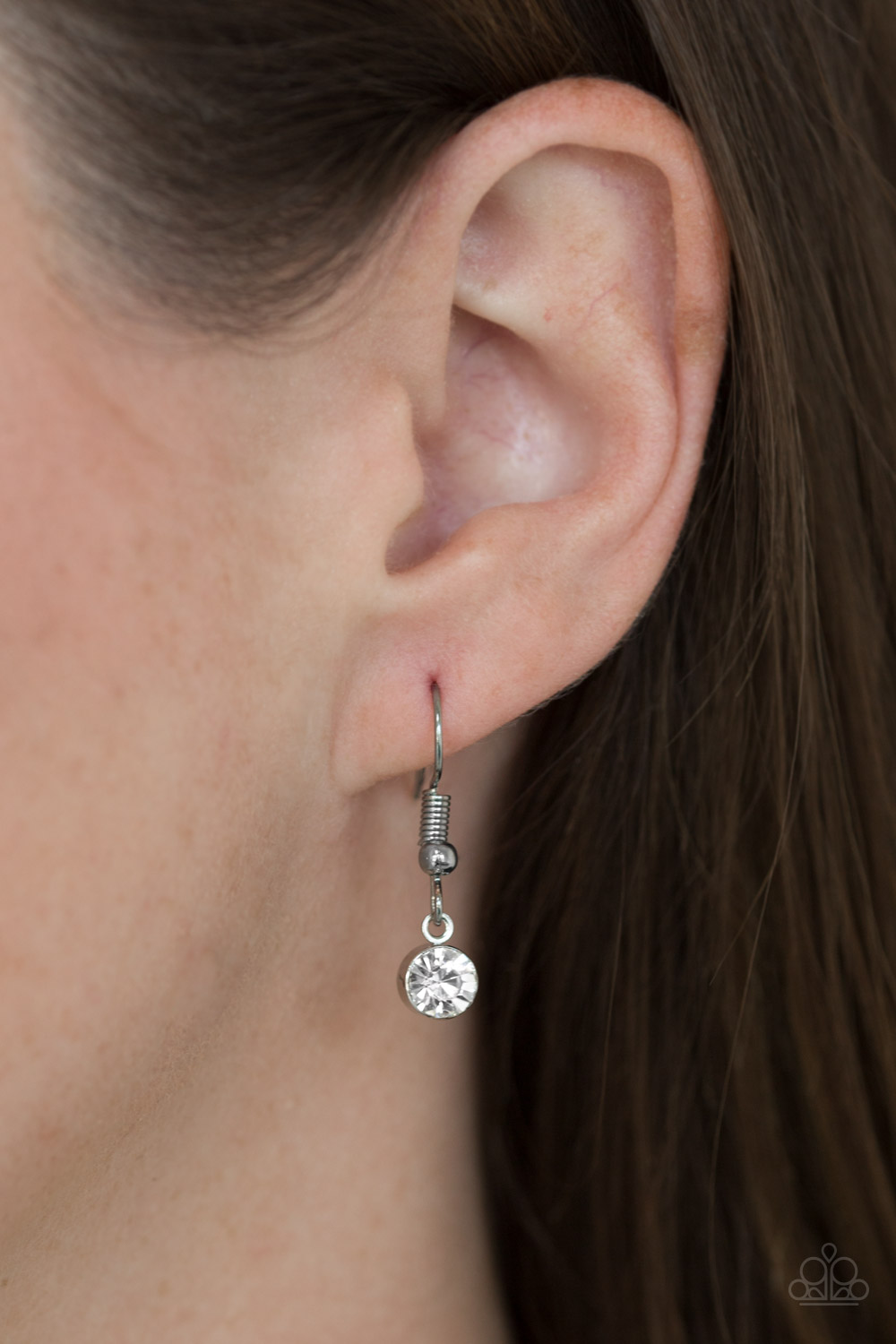 A dainty purple blossom, glittery white rhinestone, and opal rhinestones are nestled inside an ornate silver teardrop, creating a whimsical pendant below the collar. Features an adjustable clasp closure.
