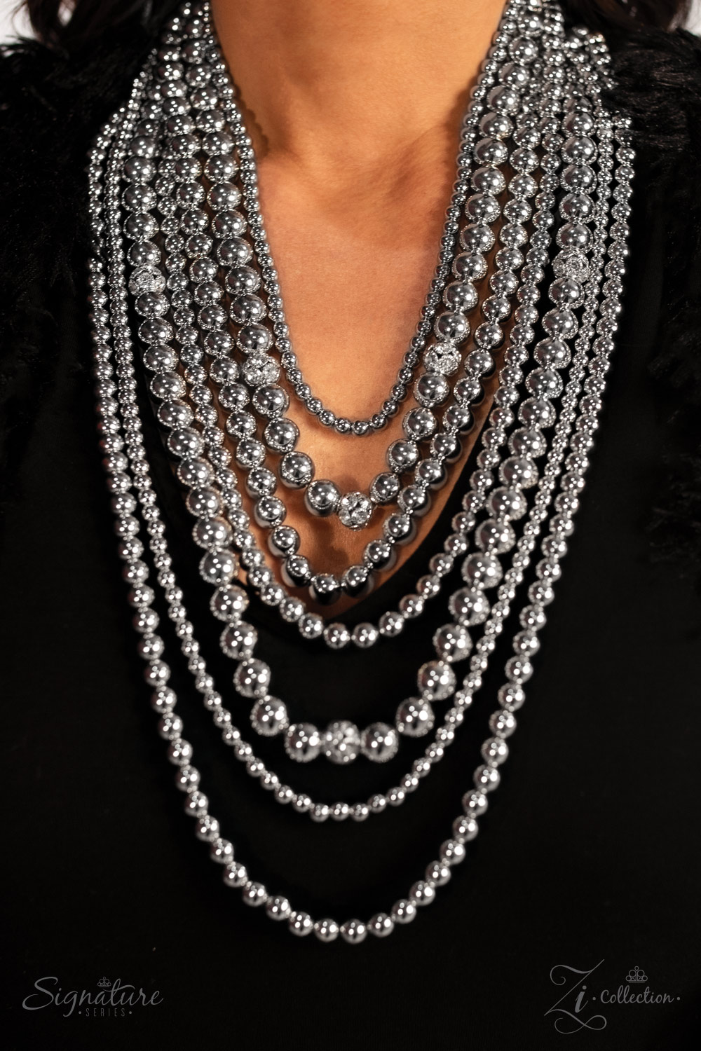 Two silver bars give way to strand after strand of shimmery silver beads, creating endless layers that fall elegantly across the chest. Beads adorned in glittery white rhinestones are sporadically sprinkled among the classic silver beading, adding timeless sparkle to the spectacular statement piece. Features an adjustable clasp closure.