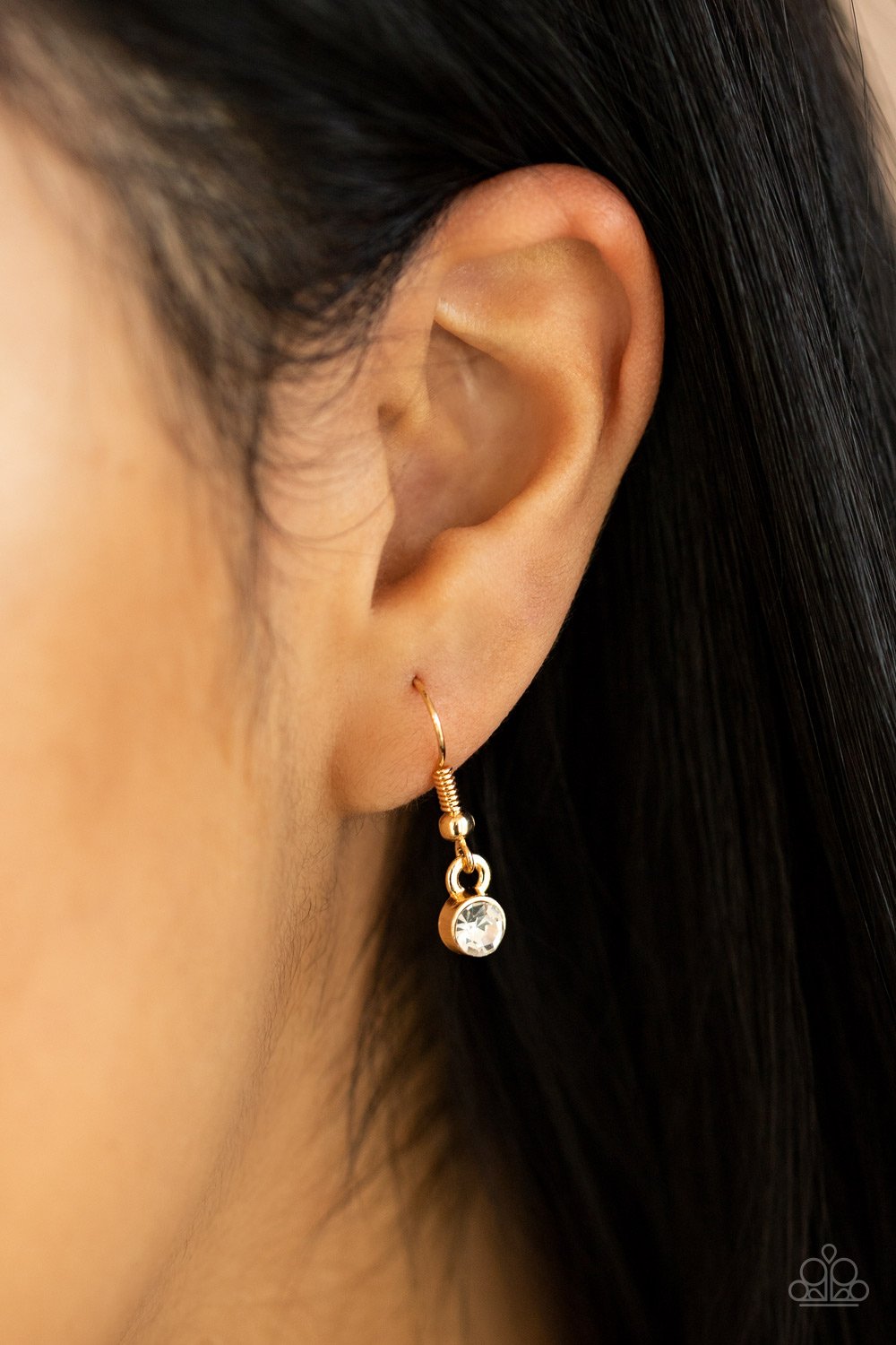 Encrusted in glittery white rhinestones, a sparkly gold key swings from the bottom of a lengthened gold chain for a refined look. Features an adjustable clasp closure.Sold as one individual necklace. Includes one pair of matching earrings.