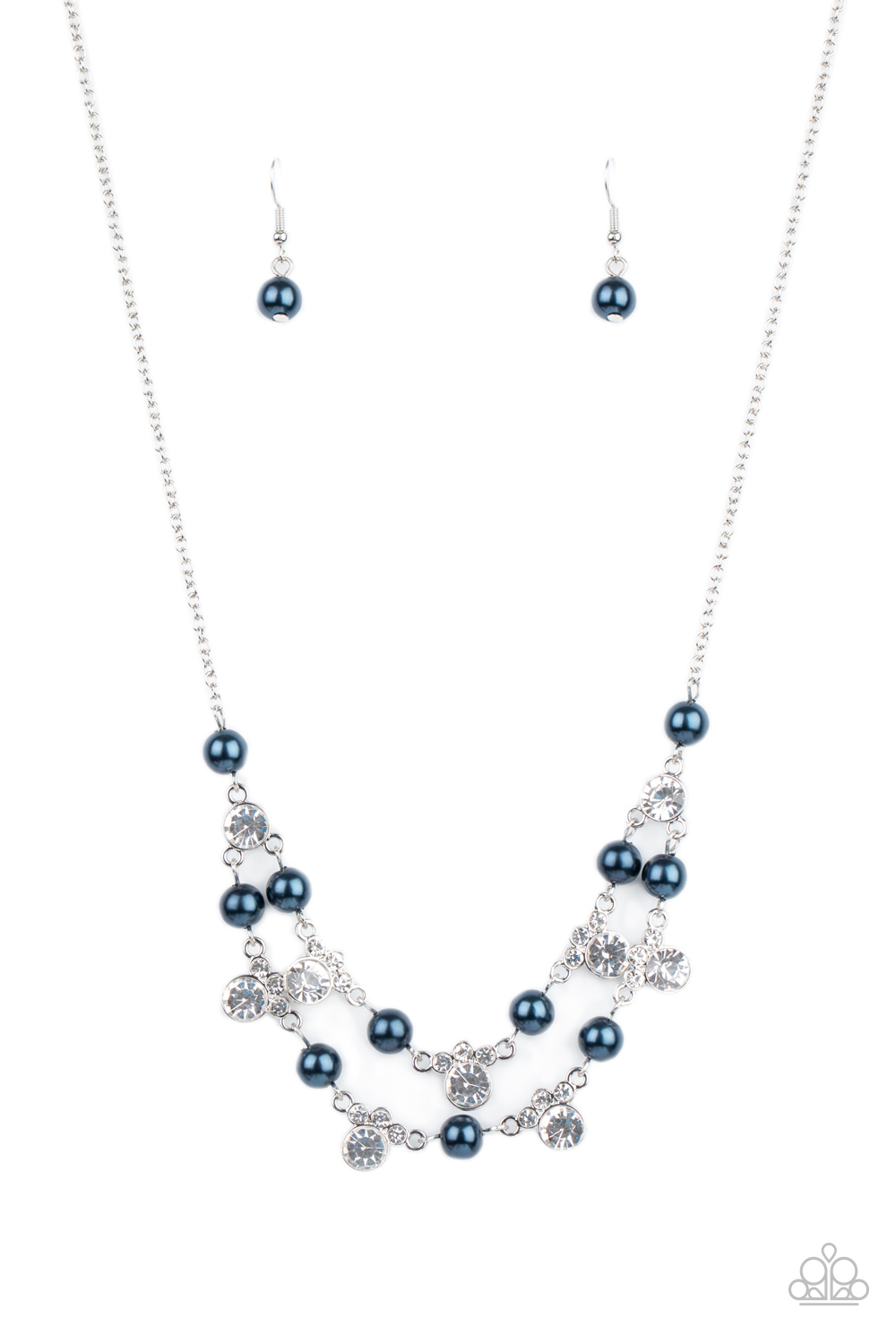 A bubbly collection of blue pearls and glassy white rhinestones delicately connect into two timeless rows below the collar, creating a stunning statement piece. Features an adjustable clasp closure.