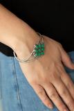 Mint teardrop beads embellish a decoratively studded frame atop a textured silver cuff, creating a whimsical pop of color atop the wrist.Sold as one individual bracelet.