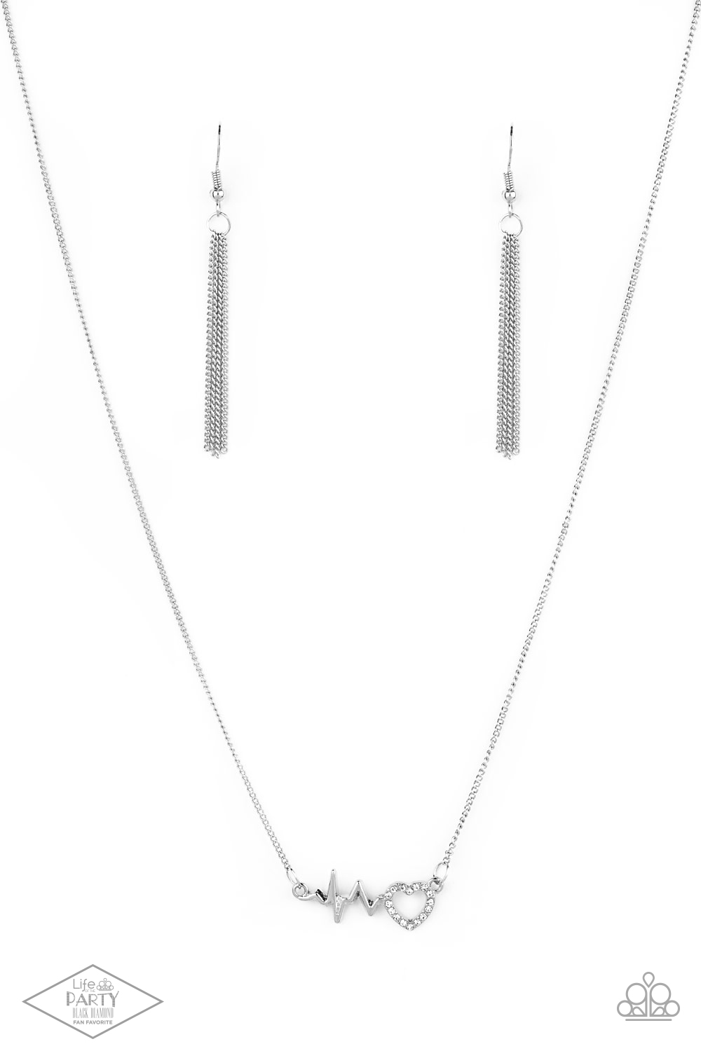Reminiscent of a heartbeat, a wavy silver bar attaches to a charming heart silhouette for a simply beautiful display. Dazzling white rhinestones are sprinkled along the heart charm for a sparkling finish. Features an adjustable clasp closure.