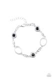 Infused with classic white rhinestones, a glittery collection of white rhinestone encrusted silver ovals and black rhinestone encrusted studded silver frames elegantly link around the wrist for a refined flair. Features an adjustable clasp closure. Sold as one individual bracelet. Get The Complete Look! Necklace: "Pushing Your LUXE - Black" (Sold Separately)