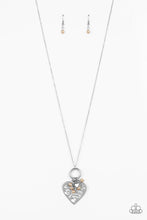 Infused with dainty brown pearls and a shimmery silver heart charm, a stenciled silver heart pendant swings from the bottom of a lengthened silver chain for a whimsical look. Features an adjustable clasp closure. Sold as one individual necklace. Includes one pair of matching earrings.