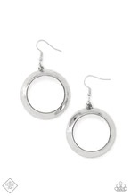 Featuring a high sheen, a wide silver band forms a generous arched circle. The front-facing ring catches and reflects the light, creating an eye-catching lure. Earring attaches to a standard fishhook fitting.Sold as one pair of earrings.