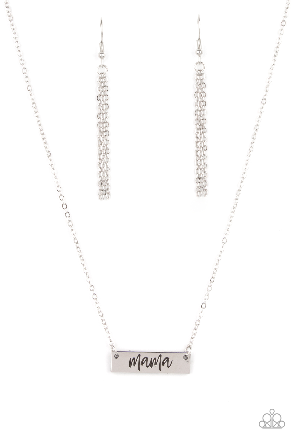 Stamped in the word, "Mama," a rectangular silver plate is suspended below the collar by a dainty silver chain, creating a whimsy inspirational pendant. Features an adjustable clasp closure.