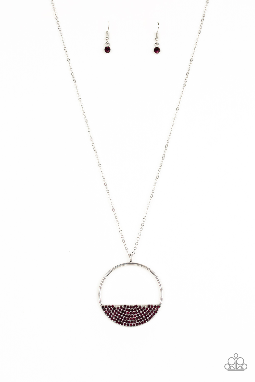 Encrusted in dainty purple rhinestones, a silver crescent frame is pressed into the bottom of an airy circular pendant for a timeless look. Features an adjustable clasp closure.