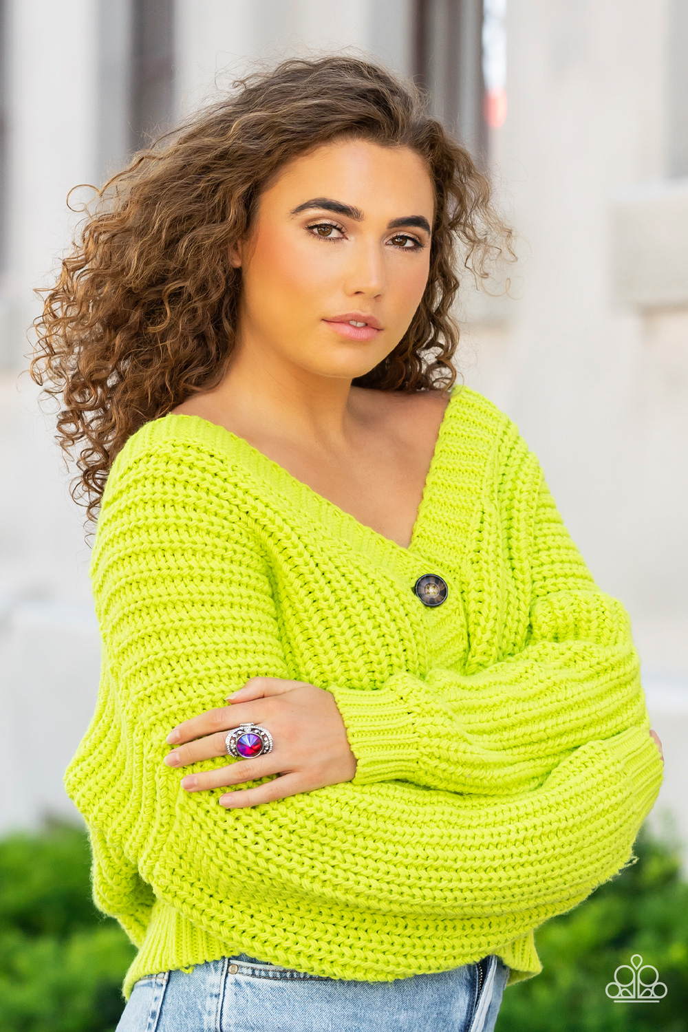 A dramatically oversized, opalescent pink gem is pressed into the center of an oval silver frame dotted and bordered in glassy white rhinestones, resulting in a sparkly filigree-filled centerpiece atop the finger. Features a stretchy band for a flexible fit.