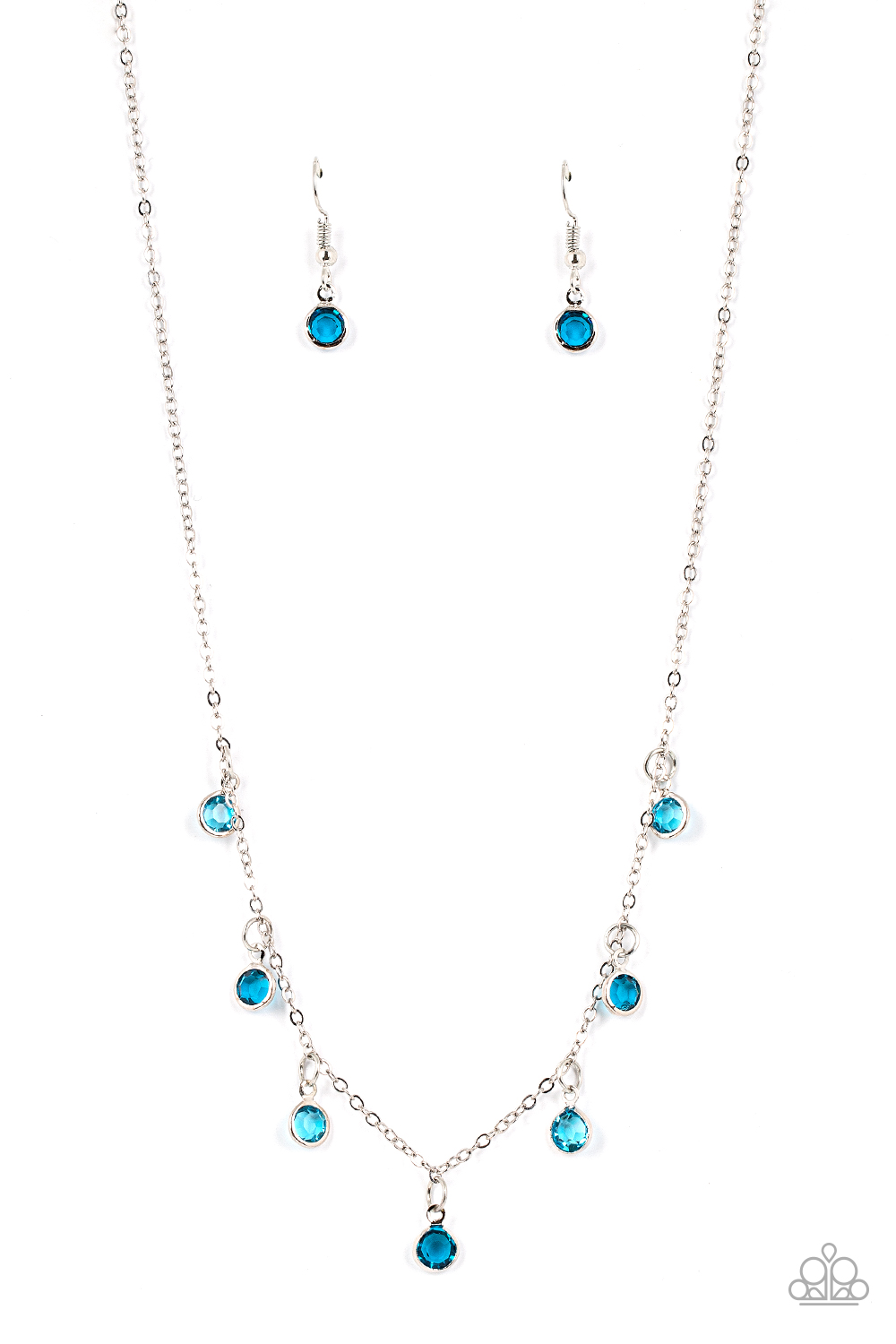 Encased in sleek silver fittings, a dainty collection of glassy Harbor Blue and Spun Sugar gems twinkles along a dainty silver chain below the collar, creating a colorful fringe. Features an adjustable clasp closure.