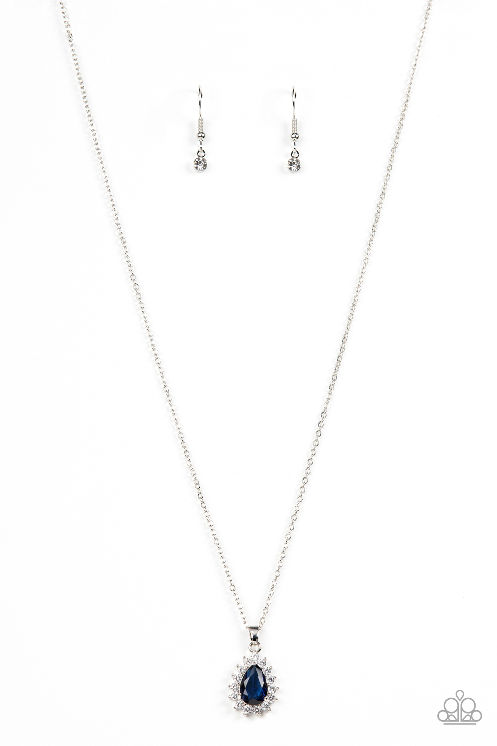 A sapphire blue teardrop is bordered in sparkly white rhinestones, creating a timelessly dainty pendant below the collar. Features an adjustable clasp closure.